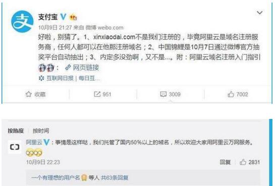但同时也有网友爆料称阿里巴巴曾在去年注册过xinxiaodai的域名,以此来质疑中奖者可能是阿里内定的。