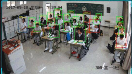 老师讲课的时候,抬头看老师的都是绿框,低头的都是红框,一个都逃不掉,甚至你的表情都可以实时记录, 在AI面前,一切都是数据。