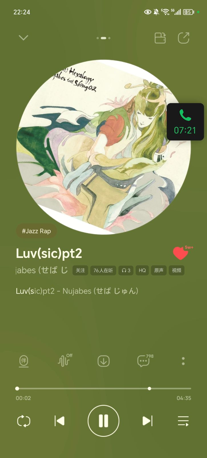 这是一张音乐播放界面截图,正在播放 《Luv(sic)pt2》,由日本传奇爵士嘻哈制作人 Nujabes(せば じゅん,Seba Jun) 与日裔美籍说唱歌手 Shing02 合作完成。